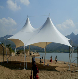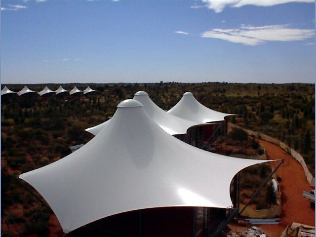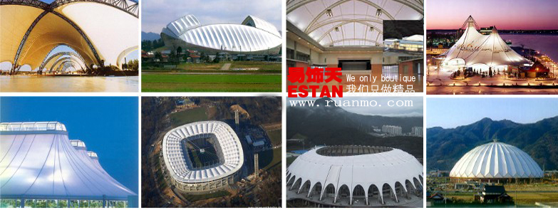可以通過鋼柱及鋼架支撐或鋼索張拉成型,其造型非常優美活潑、富有生機,易于與大自然融為一體,滿足人們返璞歸真的需求,適合于中小型跨度的建筑,也適用于大跨度的體育場、游樂場等大型公用設施的看臺挑蓬結構中。