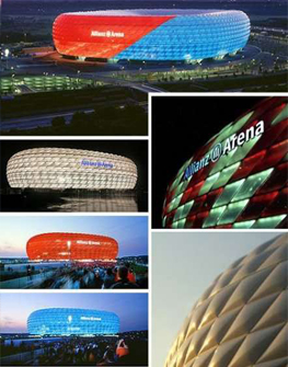張力膜個性的彎曲形狀具有非常強的雕塑感。張力曲面可以自身找到平衡。上下活動的反向彎曲膜結構形狀都可以保持平衡,并且還有可能建造看起來似乎擺脫了重力作力而在天地之間隨意漂動的大型建筑。膜結構的這種雕塑感對于建筑物外部和內部都具有渲染力。